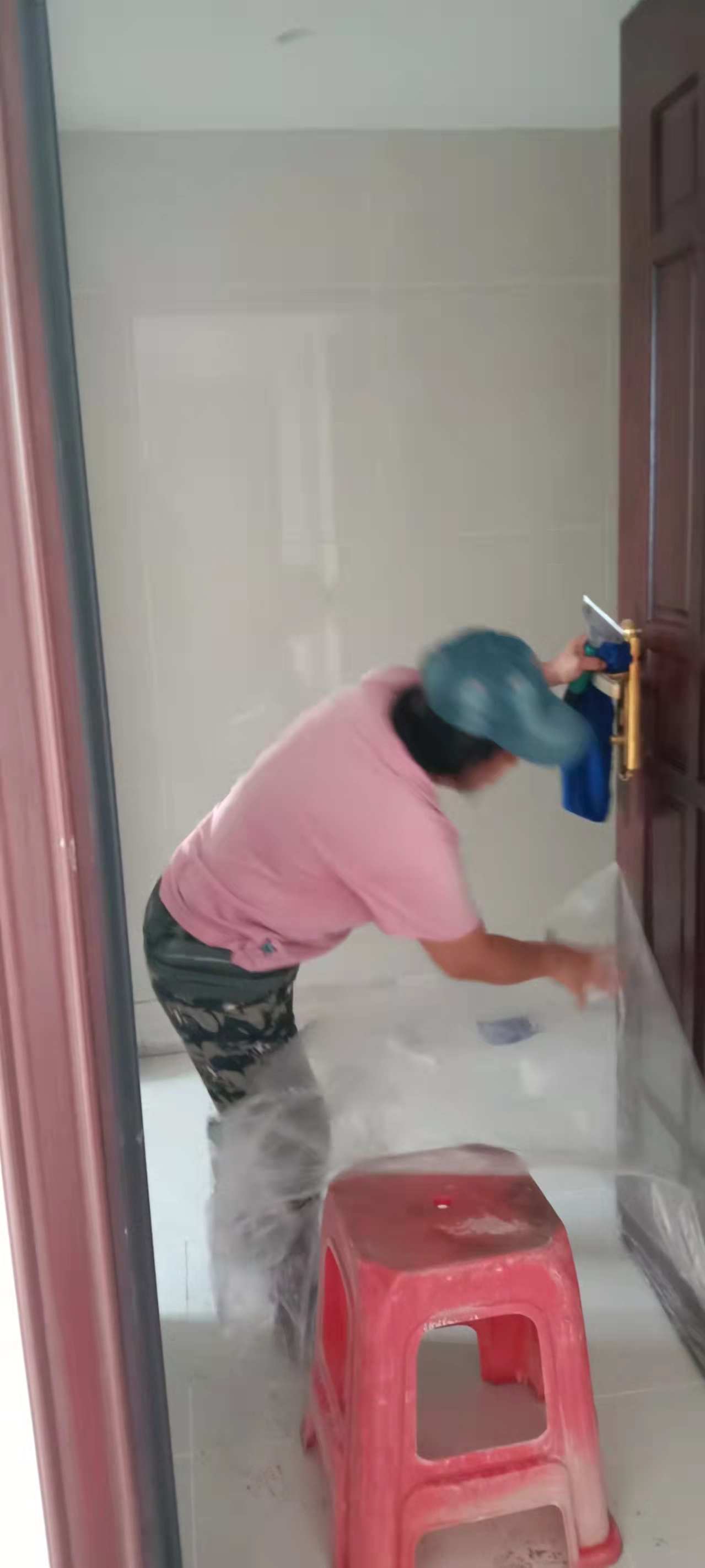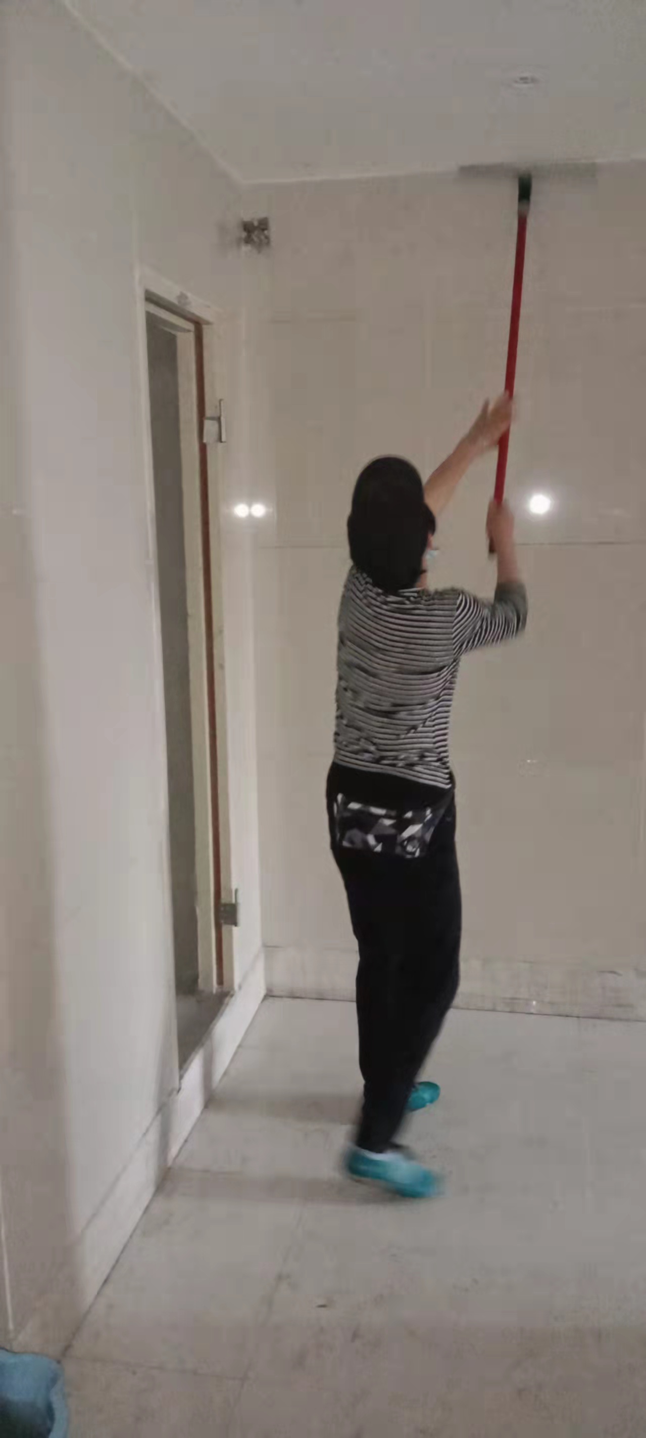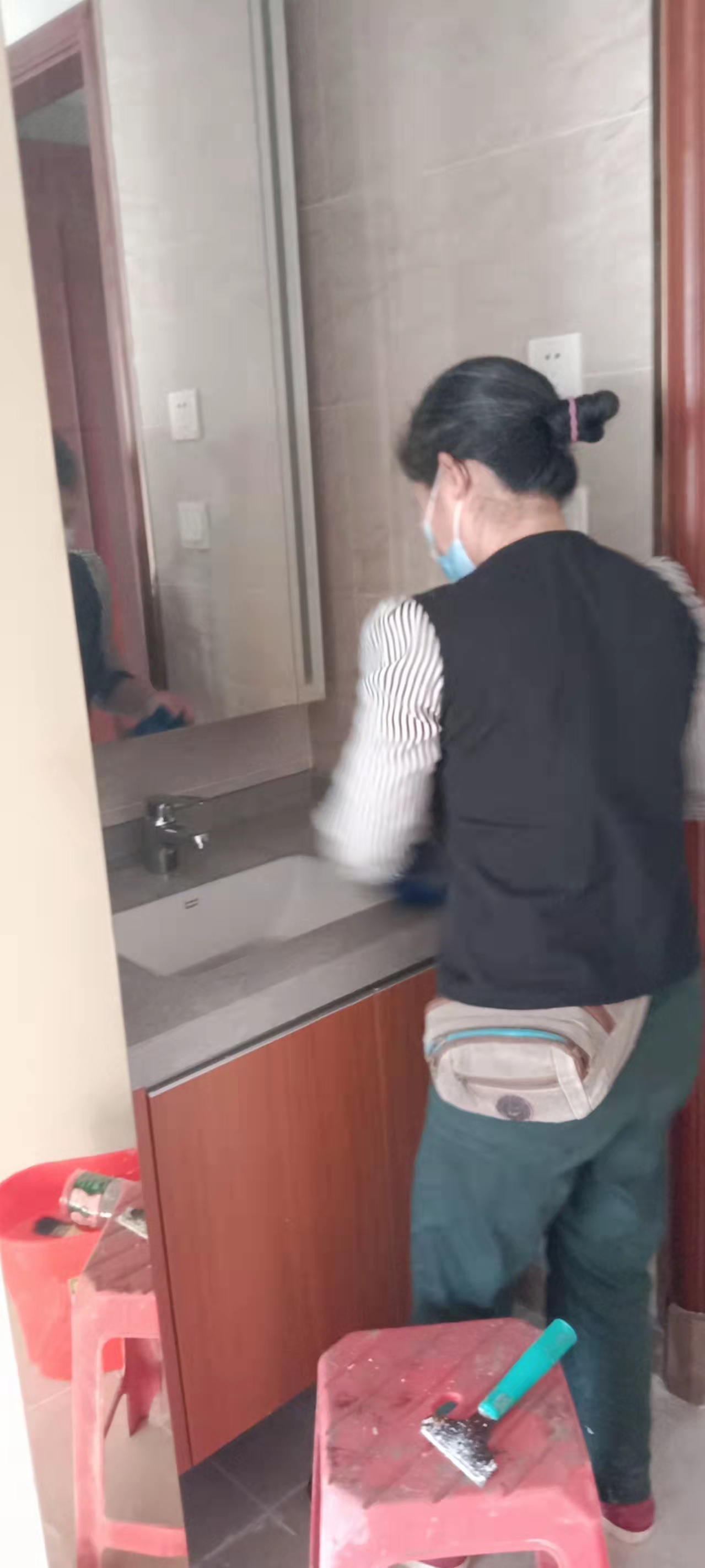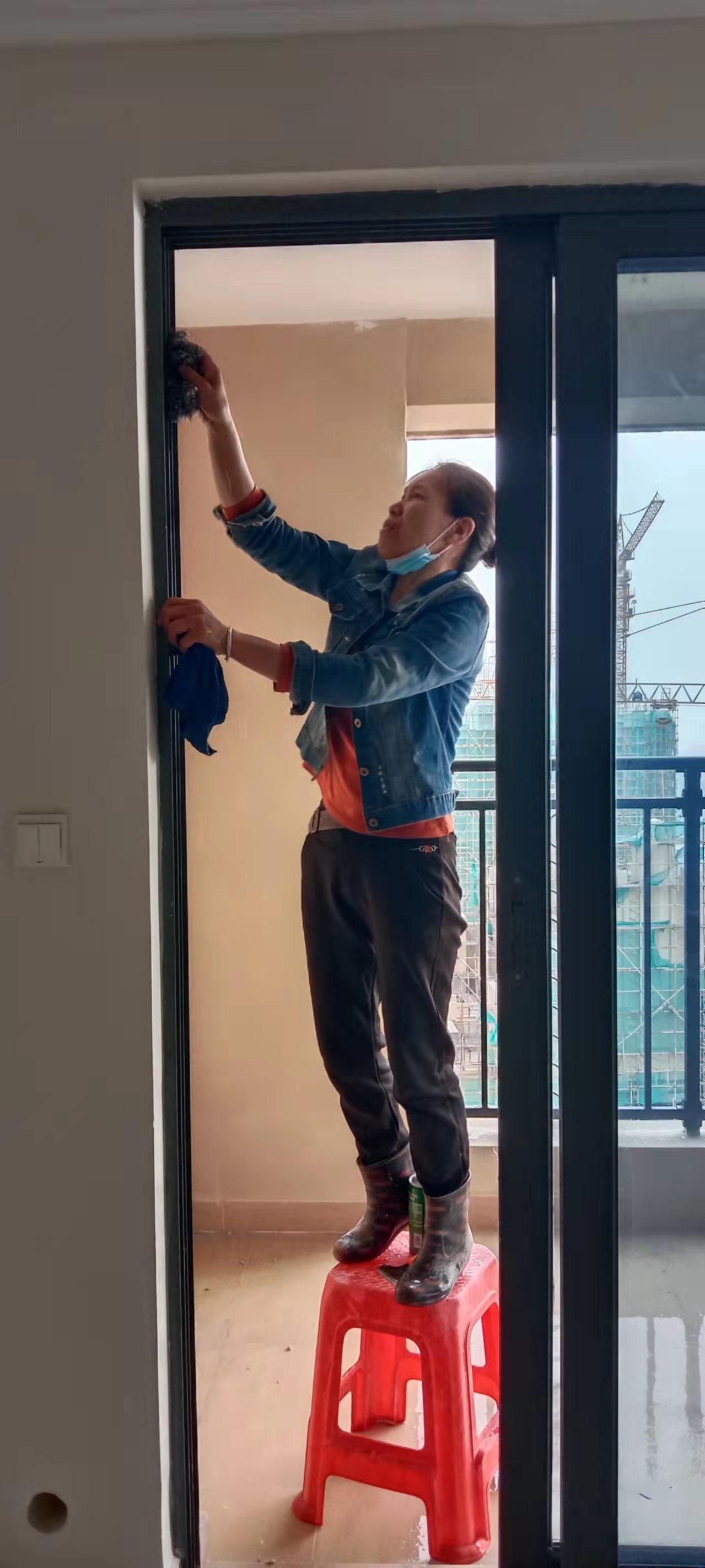 对其新楼盘进行开荒清洁清理,大家都在保洁项目经理带领下认真有序的进行着清洁工作。