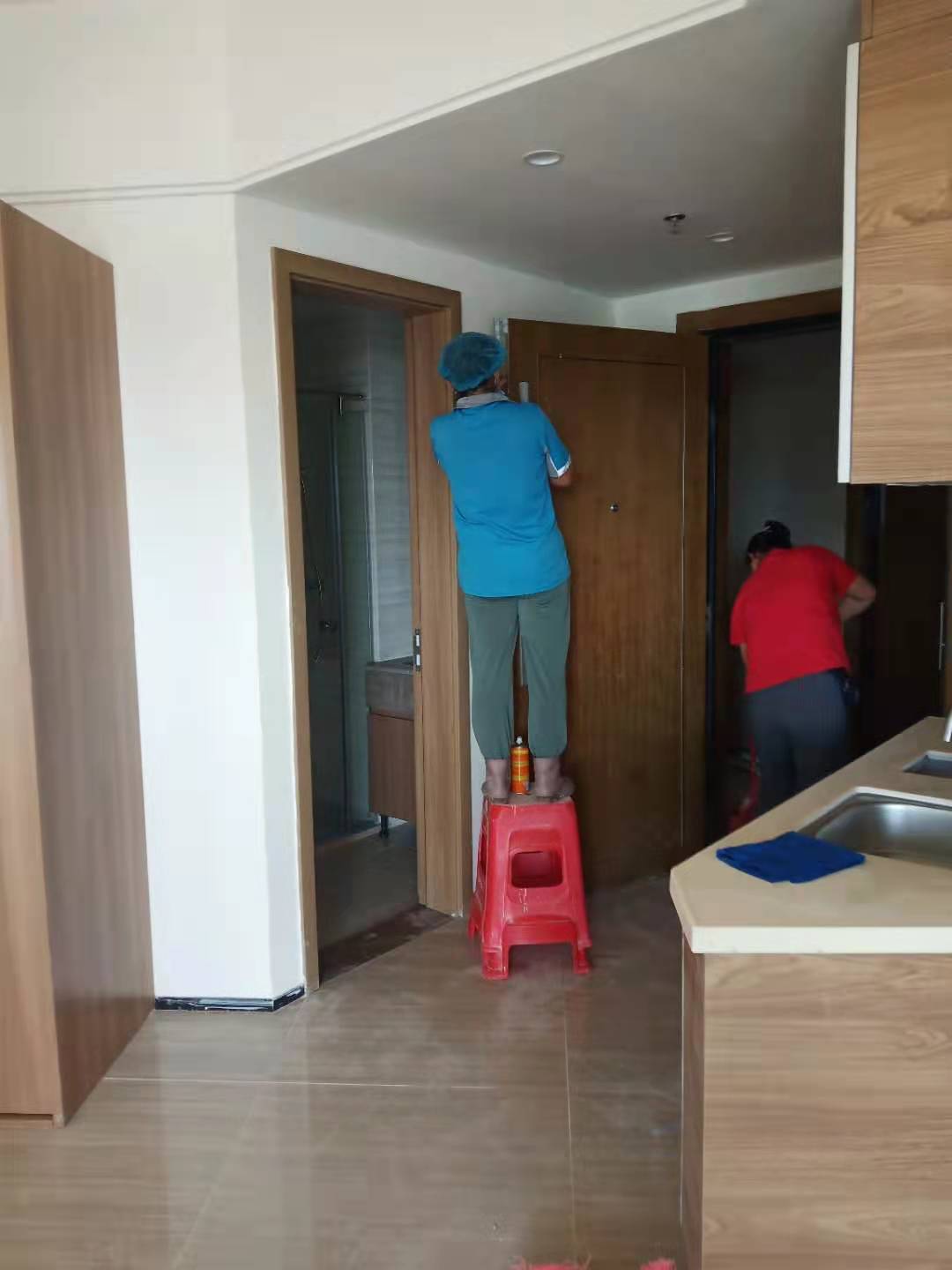 6月28日,我司保洁员继续工作在湛江恒大外滩楼盘,进行楼盘的二次开荒清洁工作