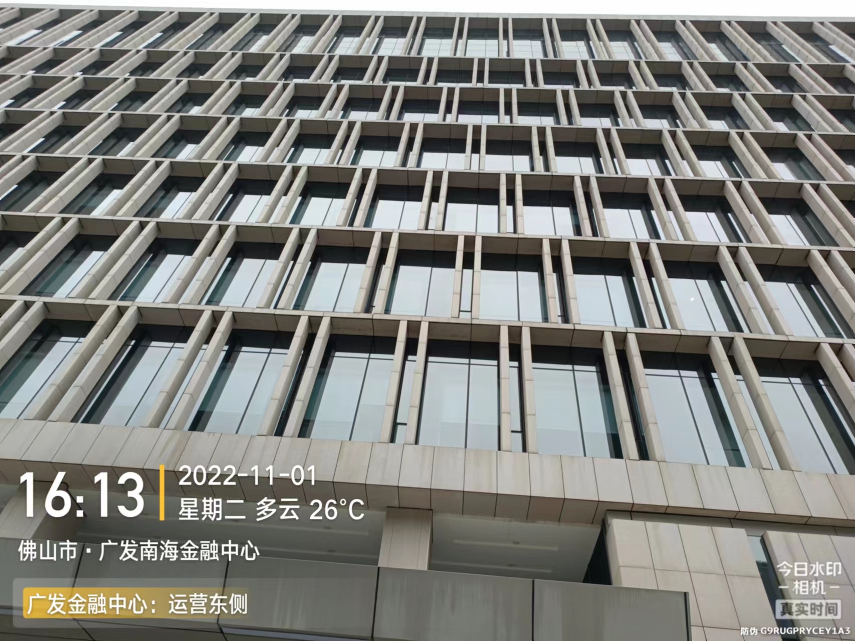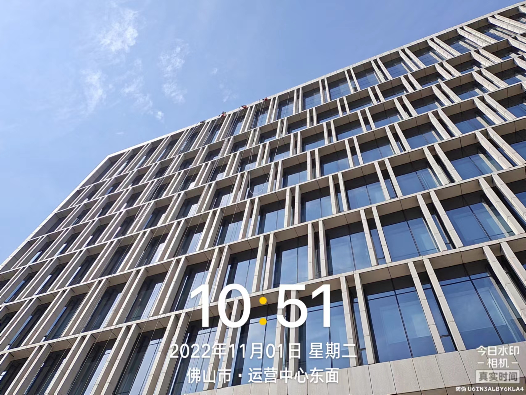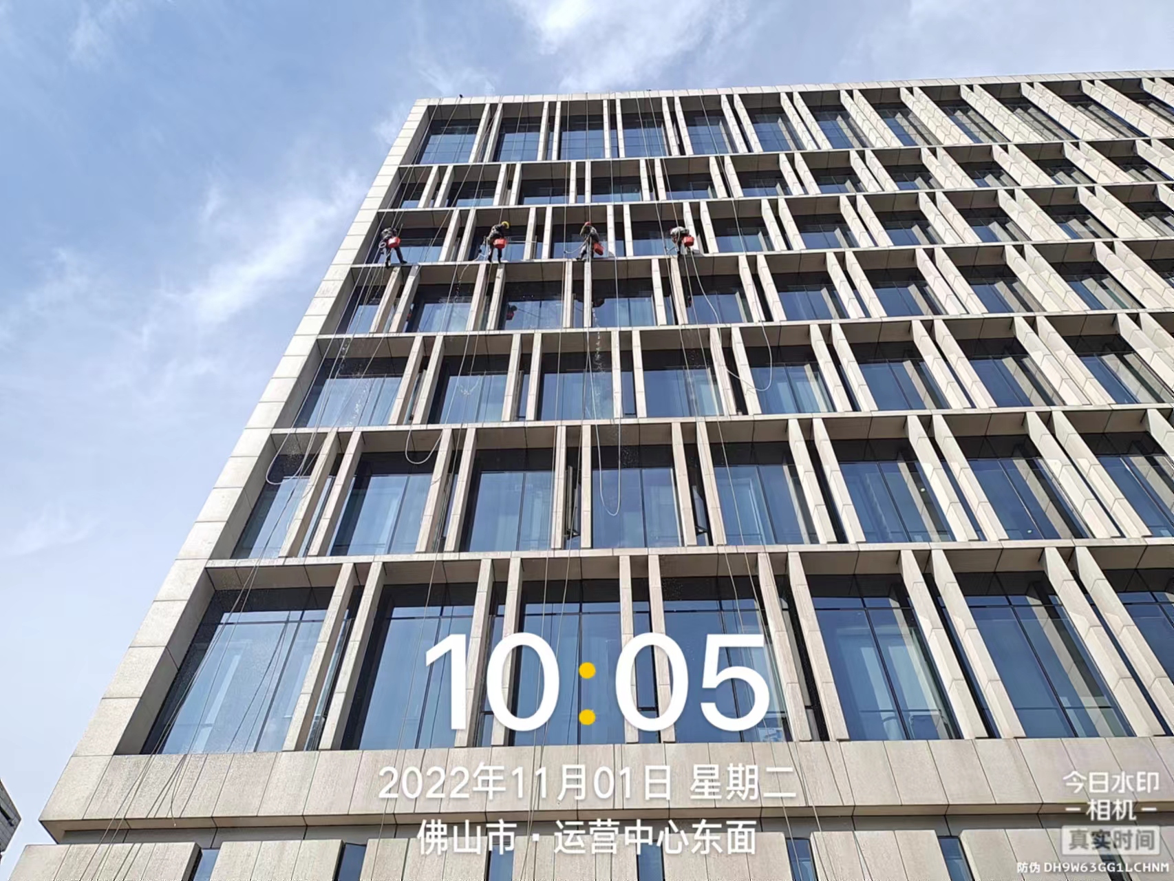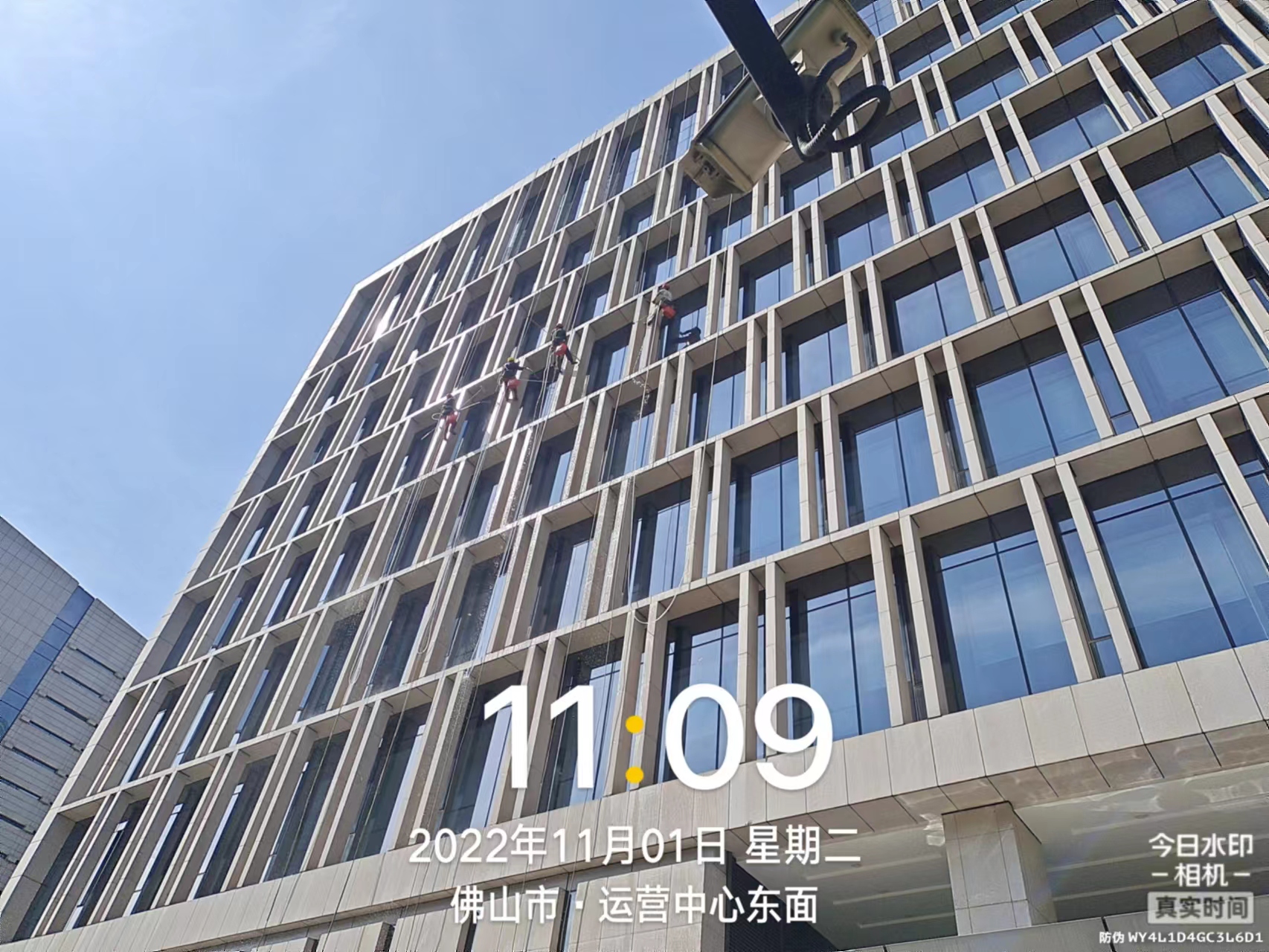 11月1日,附上我司在广发南海金融中心清洗外墙工作照片。今日操作人员为4人,均做好安全防护措施,符合高空工作要求。