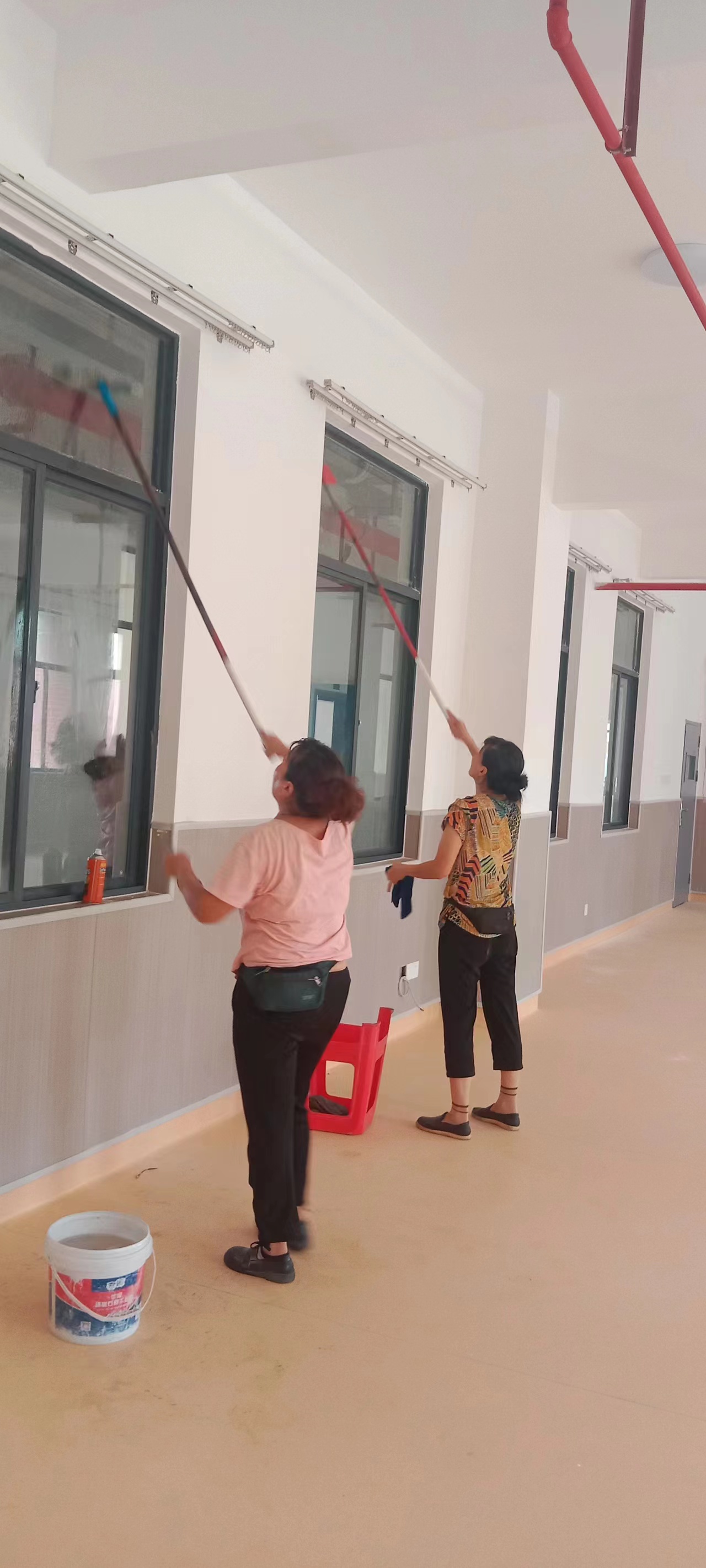 8月18日,白云区启明学校开荒保洁项目进行中。